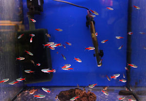 Rybičky nabízíme ve 27 akvárijích o celkovém objemu 2750l. Stálá nabídka cca 70ti druhů ryb a cca 30ti druhů živých rostlin.