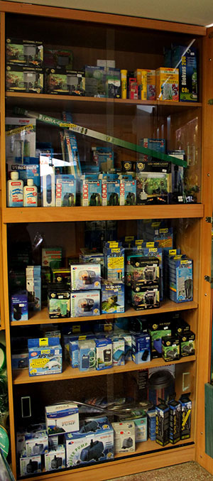 - Různé akvarijní potřeby (foto tapety, lepidla, teploměry, síťky, škrabky, odkalovače, podložky...)